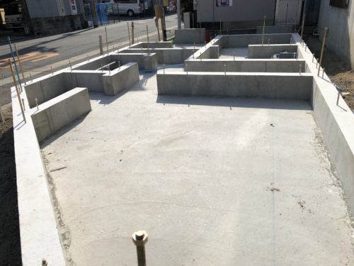 木造+RC造の混構造のH様邸。 RC造のガレージ施工中です。 職人さんが、型枠をバ…