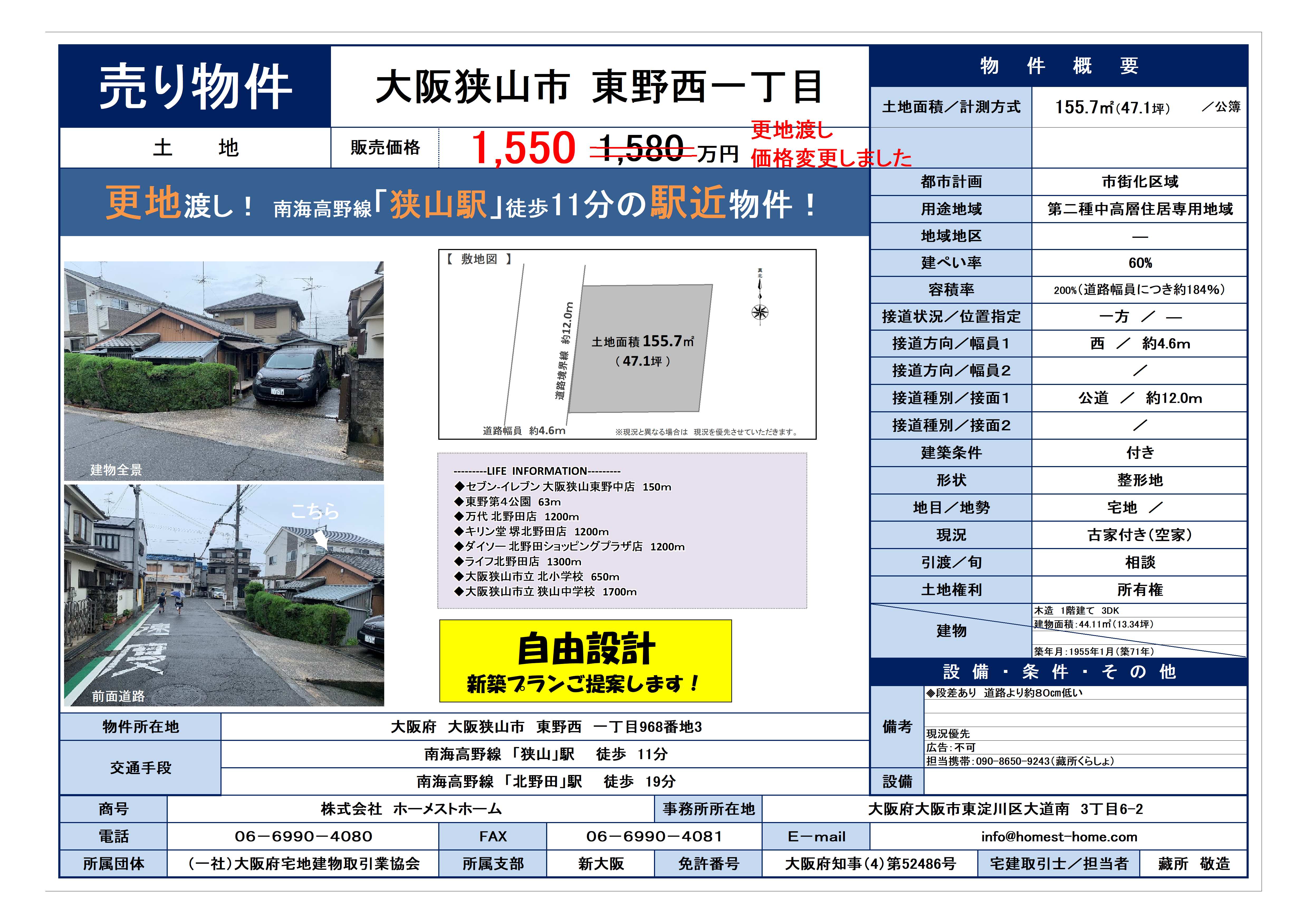 主に大阪市東淀川区や、その近隣物件を掲載しております。